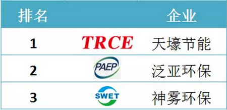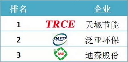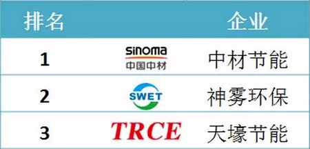 2015年上半年節能行業營收排名前三的分別是:中材節能、泛亞環保、神霧環保