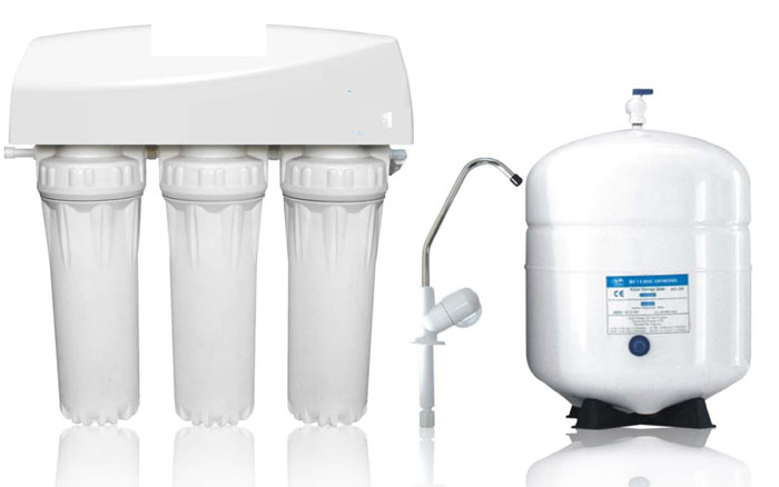 反滲透,英文為Reverse Osmosis,是60年代發展起來的一項新的薄膜分離技術。反滲透膜分離法是利用半透膜(R.O膜)以水壓(或泵浦加壓)使水由較高濃度的一方滲透到較低濃度的一方,通過孔徑僅為1/10000um的R.O膜(相當于大腸桿菌大小的1/60000,病毒的1/3000),將現在社會工業污染物及重金屬、細菌、病毒等大量混入水中的雜質全部清除,使出水的導電率在10us/cm(25度時)以下,溶解性總固體含量小于3mg/升,從而達到規定的理化指標及衛生標準的一種新型水處理技術。