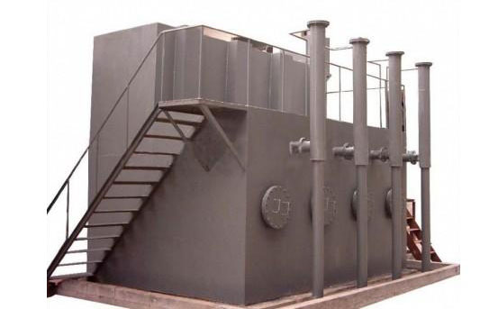 4)氣浮反應池中水量到達液位后,啟動大型一體化生活污水處理設備溶氣釋放器開始工作,使絮凝混合物上浮。浮渣層達到一定厚度時,開啟刮渣機,將浮渣收集到集泥槽中,通過大型一體化生活污水處理設備集泥槽進入污泥濃縮池。